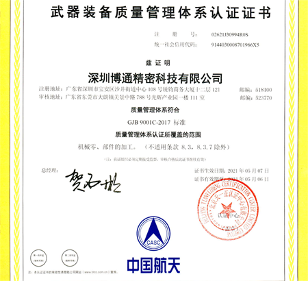 深圳市創(chuàng)思維企業(yè)管理技術服務有限公司輔導深圳博通順利通過GJB 9001C-2017武器裝備質(zhì)量管理體系認證與ISO9001質(zhì)量管理體系認證兩項認證。