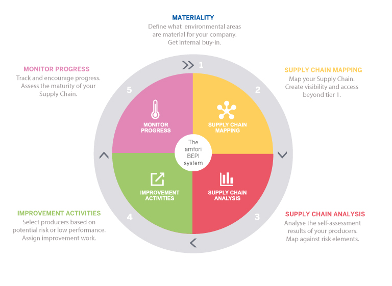 amfori BEPI 系統(tǒng)是公司及其供應(yīng)鏈通過(guò)差距分析、環(huán)境管理改進(jìn)、現(xiàn)場(chǎng)行動(dòng)計(jì)劃和進(jìn)度監(jiān)控來(lái)實(shí)現(xiàn)環(huán)境績(jī)效持續(xù)改進(jìn)的實(shí)施系統(tǒng)。